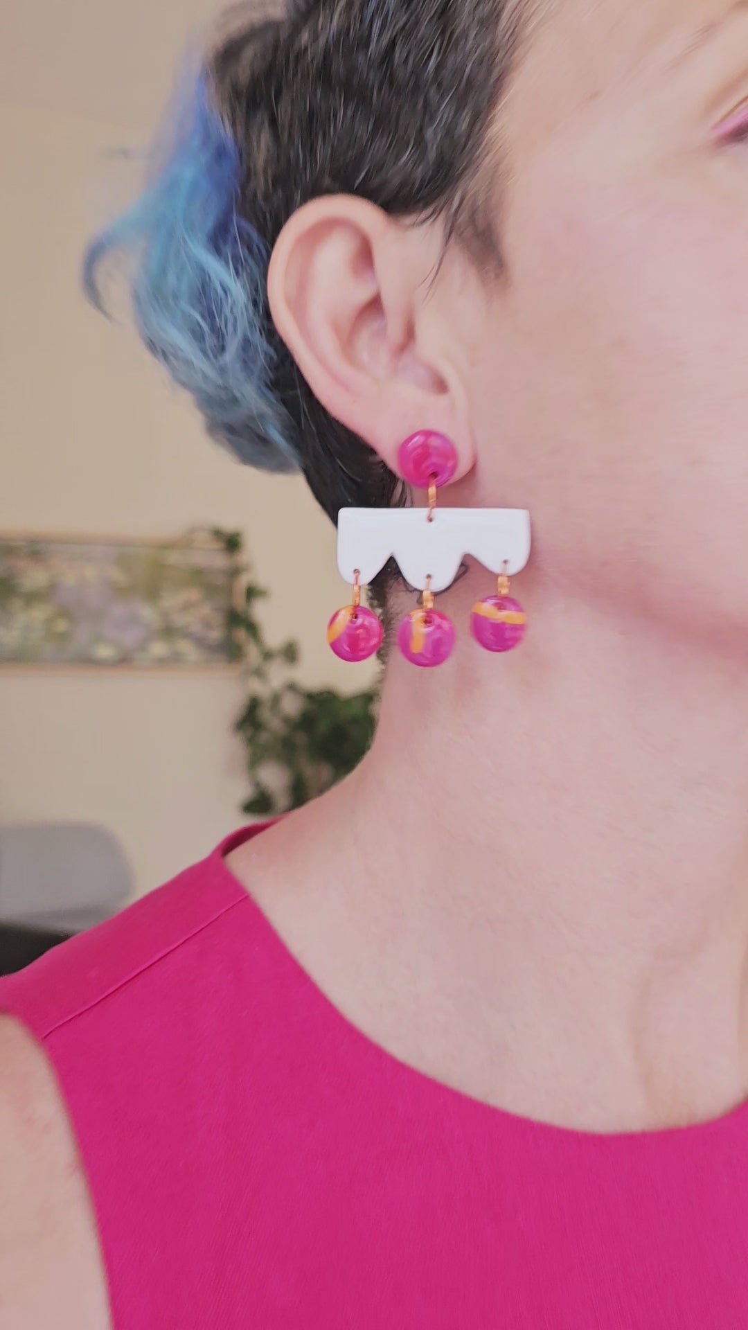 Pink & Orange Polymer Clay Earrings - Handmade Statement Dangles